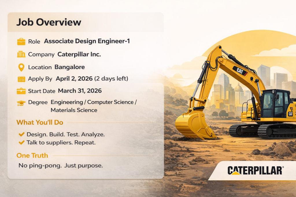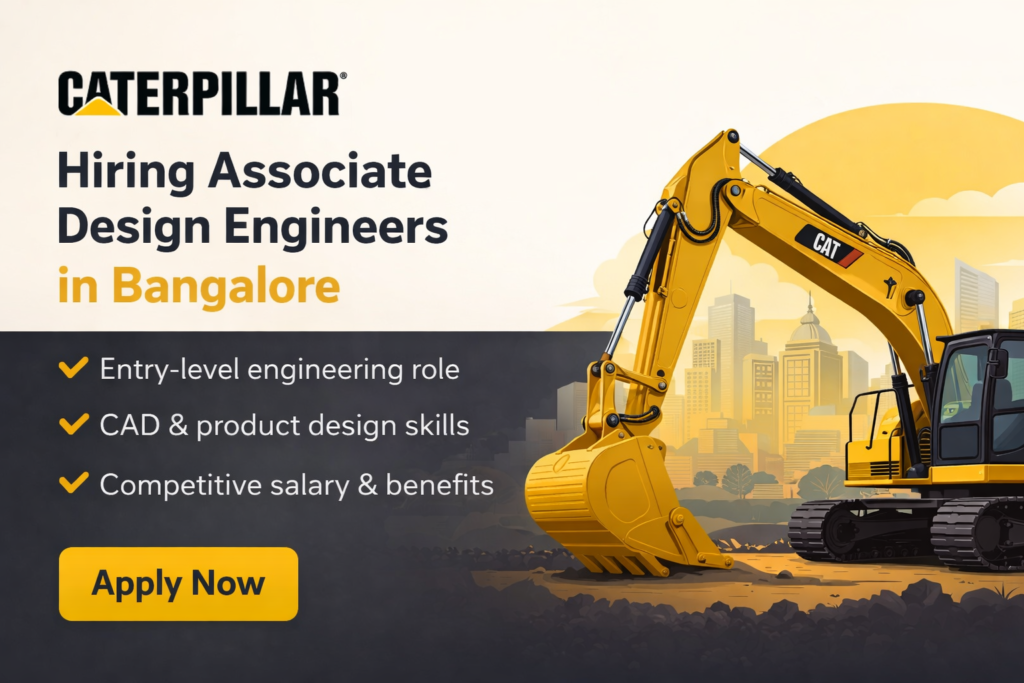 - Who can apply for Caterpillar Associate Design Engineer jobs? Candidates with a degree in Engineering, Computer Science, or Materials Science are eligible. Freshers with relevant academic projects or internships can also apply.