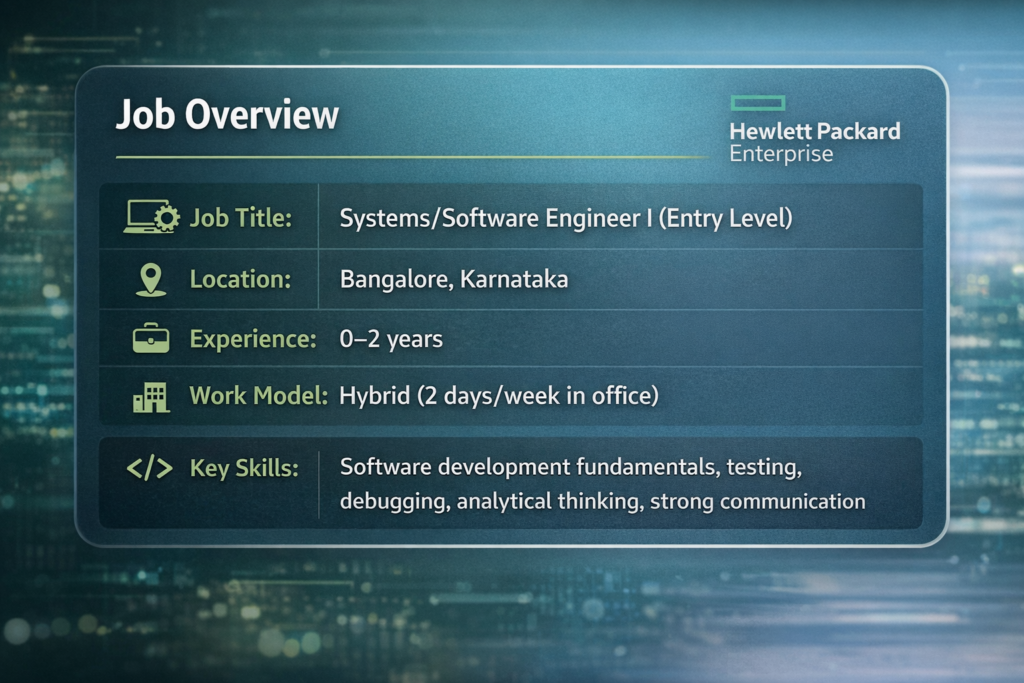 | 📌 Entry-Level Salary (India) | ₹8 – ₹12 LPA * *Based on market benchmarks & HPE’s entry-level bands. Final offer depends on skills & interview. |