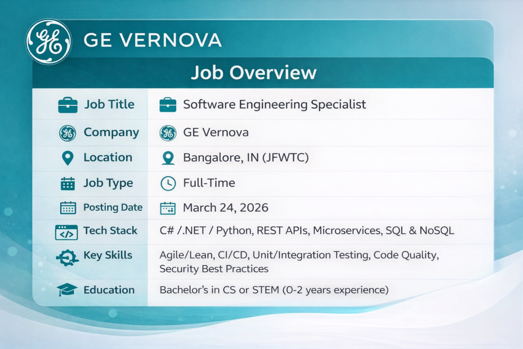 Have you ever come across a job description that feels like it was written just for you? That’s exactly the feeling this one gave me. Let me walk you through why this Software Engineering Specialist role at GE Vernova might be the career move you’ve been waiting for.
